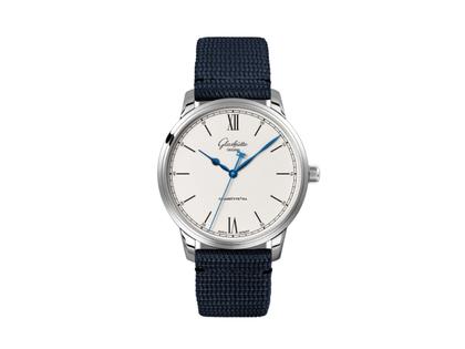 Glashütte Original Senator Excellence Automatik Edelstahl 40mm weißes Zifferblatt blaues Textilband