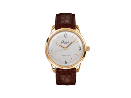 Glashütte Original Sixties Automatik Roségold 39mm silberfarbenes Zifferblatt braunes Lederband