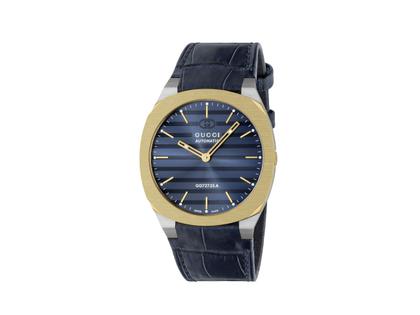 Gucci 25H Automatik Edelstahl und Gelbgold 40mm blaues Zifferblatt blaues Lederband YA163323