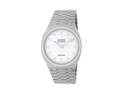 Gucci 25H Automatik Edelstahl 40mm weißes Zifferblatt mit Brillant-Lünette Metallband YA163303