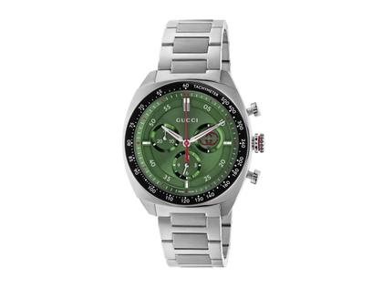 Gucci Interlocking Chronograph Quarz Edelstahl 41mm grünes Zifferblatt Metallband YA142318
