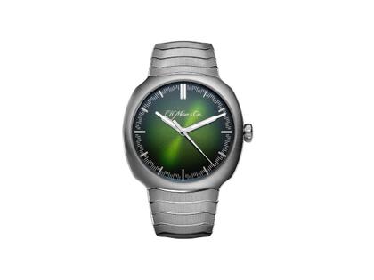 Das neue Modell von H. Moser - Streamliner Centre Seconds Automatic kommt mit einem ganz besonderen Zifferblatt. Das Zifferblatt aus Matrix Grün (Matrix Green fume) spielt mit den Farbtönen. Je nach Lichteinfall changiert es von olivgrün bis rotgold. Die fast schon elektrisierende, lebhafte Farbpalette setzt einen ganz besonderen Design-Akzent.