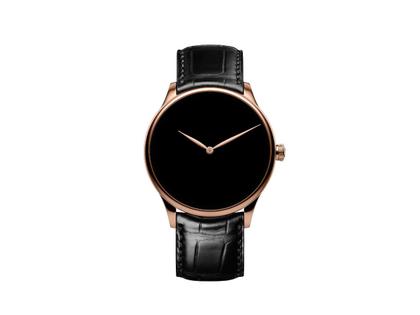 Mit ihrem markanten Aussehen propagiert die H. Moser Venturer Small Seconds Purity eine Rückbesinnung auf das Wesentliche im Sinne der minimalistischen Philosophie „Weniger ist Mehr“: Das Zifferblatt trägt kein Logo und auch die 4 Hauptindizes sind nicht ausgeführt.
