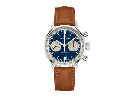 Hamilton American Classic Intra-Matic Auto Chrono 40 mm blaues Zifferblatt braunes Lederband