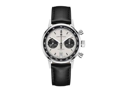 Hamilton American Classic Intra-Matic Auto Chrono 40 mm silbernes Zifferblatt schwarzes Lederband