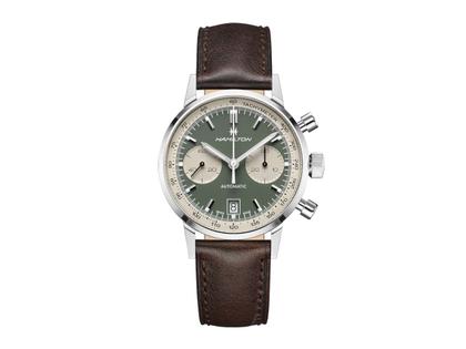Hamilton Intra-Matic Auto Chrono 40 mm lichtgrünes Zifferblatt braunes Lederband