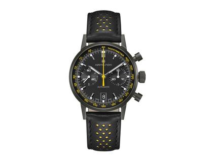 Hamilton Intra-Matic Auto Chrono Edelstahl PVD-Schwarz 40mm schwarz-gelbes Zifferblatt schwarzes Lederband