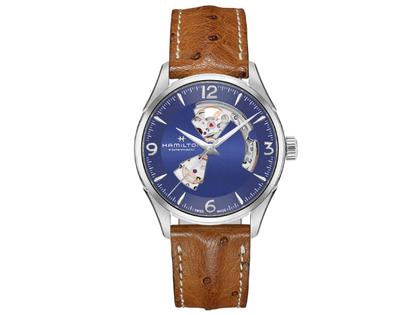 Hamilton Jazzmaster Open Heart 42mm blau Lederband Strauß