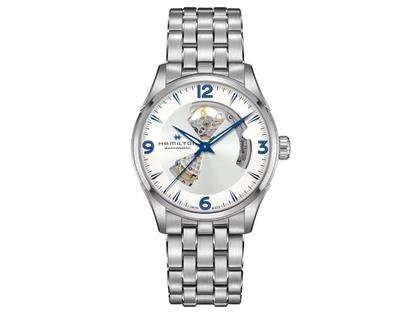 Hamilton Jazzmaster Open Heart Automatik Edelstahl 42mm silbernes Zifferblatt Metallband