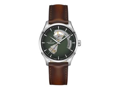 Hamilton Jazzmaster Open Heart Automatik Edelstahl 42mm grünes Zifferblatt braunes Lederband