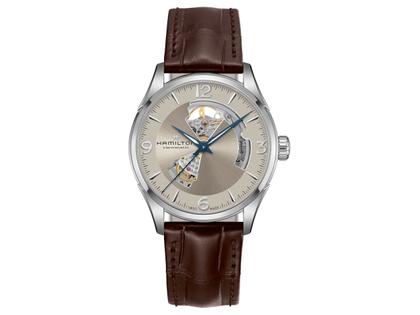 Hamilton Jazzmaster Open Heart Automatik Edelstahl 42mm graues Zifferblatt braunes Lederband