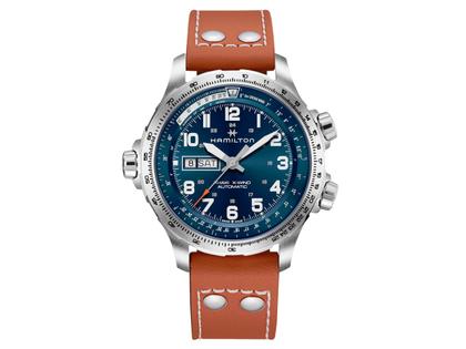 Hamilton Khaki Aviation X-Wind Day Date Auto Edelstahl 45mm blaues Zifferblatt braunes Lederband