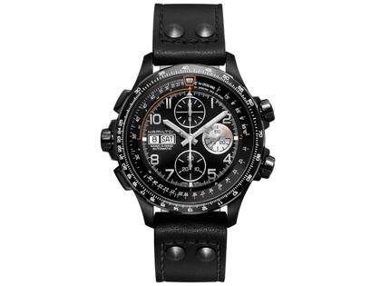 Hamilton Khaki Aviation X-Wind Auto Chrono Edelstahl PVD-Schwarz 45mm schwarzes Zifferblatt schwarzes Lederband