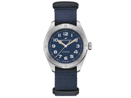 Hamilton Khaki Field Expedition Automatik Edelstahl 41mm blaues Zifferblatt blaues Textilband