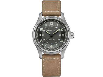 Hamilton Khaki Field Titanium Auto Titan 42mm graues Zifferblatt braunes Lederband