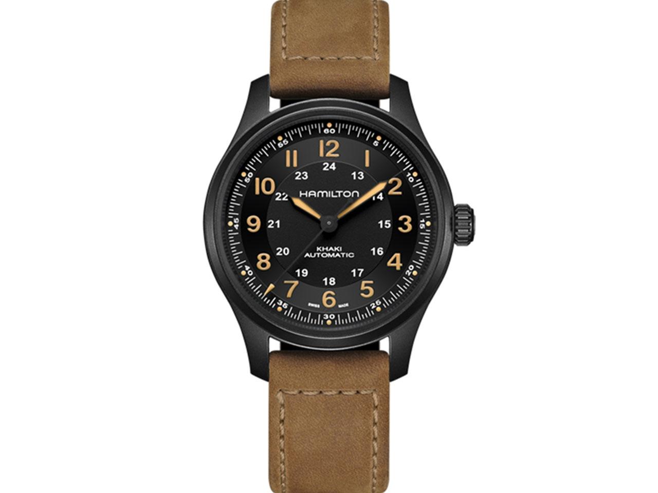Hamilton Khaki Field Titanium Auto Titan 42mm schwarzes Zifferblatt braunes Lederband