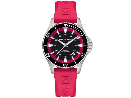 Hamilton Khaki Navy Scuba Auto Edelstahl 40mm schwarzes Zifferblatt pinkes Kautschukband
