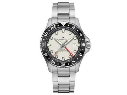 Hamilton Khaki Navy Scuba GMT Automatik Edelstahl 43mm weißes Zifferblatt Metalland