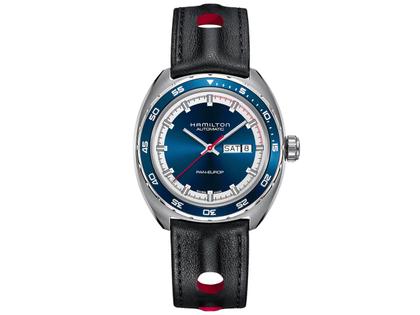 Die Hamilton Pan Europ Day Date ist eine Hommage an die gleichnamige Uhr aus dem Jahre 1971 und ergänzt den bereits kurz nach seinem Erscheinen ausverkauften Chronograph aus dem Jahr 2011.