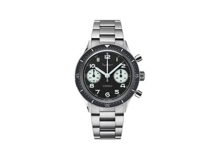 Hanhart 415 ES Reverse Panda Chronograph Handaufzug Edelstahl 39mm schwarzes Zifferblatt Metallband