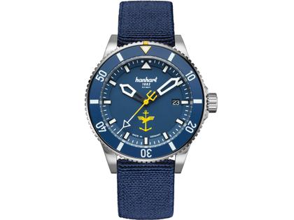 Hanhart Fly Navy Aerosphere MFG3 Automatik Edelstahl 42mm blaues Zifferblatt blaues Textilband limitiert