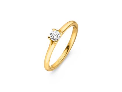 Solitaire-Ring aus 750/- Gelbgold poliert, innen poliert, mit 1 Brillant 0,220 ct TW (F) vsi1, 4-er Krappenfassung