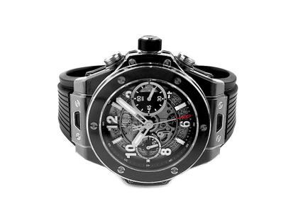 Wir können Ihnen hier ein besonderes Modell aus dem Hause Hublot anbieten: Die Big Bang Unico Black Magic aus schwarzer Keramik mit Kautschukband.