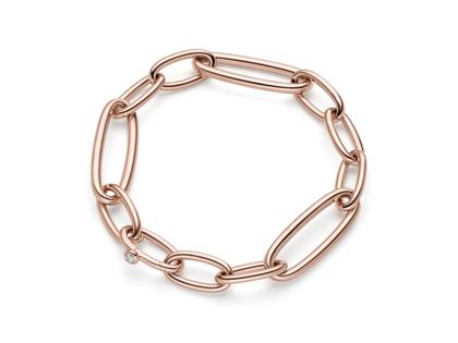 handgefertigtes Glieder-Armband aus 750/- Rotgold Rouge Royal, poliert, 11 mm breit, integrierter Verschluss, 1 Brillant 0,09 ct TW(G) vvsi, 20 cm lang