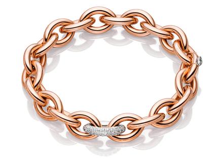 handgefertigtes Collier aus massivem polierten 750/- Rotgold Rouge Royal, 12 mm breit, 20 cm lang, mit Brillanten 1,00 ct TW (G) vvsi