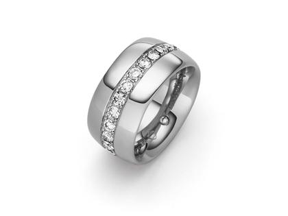 handgefertigter Ring aus 750/- Weißgold, poliert, 11 mm breit, Brillanten 1,52 ct TW vvsi