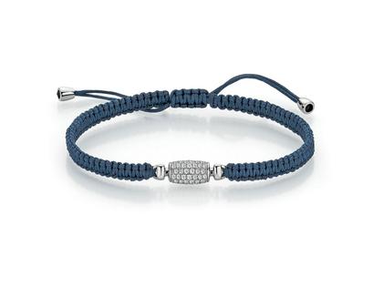 Wechselschließe Tönnchen aus 750/- Weißgold poliert, 78 Brillanten zusammen 0,462 ct TW G si mit passendem Makaramee Armband dunkelblau mit 750/- Weißgold, 17 cm lang - weitere Längen auf Anfrage möglich