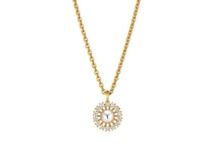 Jörg Heinz Swing Boho Pearl XS Kette mit Anhänger Gelbgold 42cm mit weißer Zuchtperle und Brillanten 0,070ct