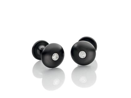 Dezente Eleganz für Damen und Herren - Manschettenknöpfe aus Edelstahl schwarz PVD beschichtet mit 950/- Platin, 2 Brillanten 0,20 ct getöntes Weiß vsi