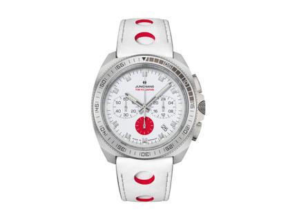 Junghans 1972 Chronoscope Sports Edition 2020 Quarz Edelstahl 43mm weißes Zifferblatt weißes Lederband