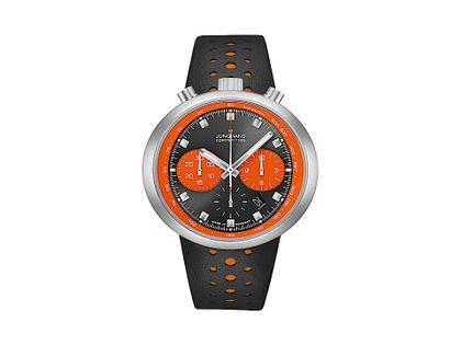 Inspiriert ist das Design der 1972 Competition Edition von ihrem Vorbild aus den 1970er Jahren. Der spannende Kontrast zwischen dem anthrazitfarbenen Zifferblatt und den orangen Totalisatoren, sowie dem Tachymeter sorgen für Aufregung in einem leicht elliptischen Gehäuse. Das Gehäuse selbst besteht aus 750/- Weißgold und sorgt so für das Gewisse Etwas an Luxus. Die leicht elliptische Form verleiht der Junghans 1972 Competition eine außergewöhnliche Dynamik und betont ihre Sportlichkeit. Limitiert ist dieses Modell auf nur 50 Exemplare weltweit!