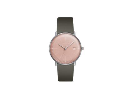 Junghans Max Bill Damen Quarz Edelstahl 32,7mm rosa Zifferblatt braunes Lederband