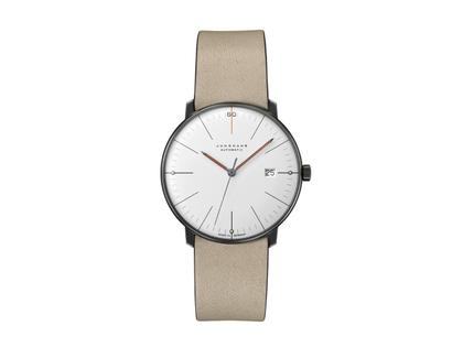 Junghans Max Bill Automatic Edition 60 Edelstahl PVD-Grau 38mm weißes Zifferblatt beiges Lederband
