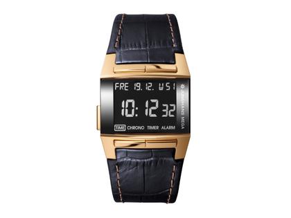 Junghans Mega 1000 Limited Edition Funkuhr Edelstahl PVD-Roségold 38x36mm digitales Zifferblatt schwarzes Lederband