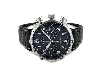 Wir bieten Ihnen hier ein sehr gut erhaltenes Exemplar dieser markanten Uhr aus dem Hause Junghans an. Der Chronograph ist sehr begehrt und gehört zu den gefragtesten Modellen der Kollektion. Diese Uhr wurde im Auguts 2018 bei einem offiziellem Konzessionär der Marke Junghans erworben und nun wieder in Zahlung gegeben. Der Meister Pilot Chronograph wurde bei uns in der Werkstatt umfassend überprüft und aufgefrischt. Wir bieten sie hier in einem sehr guten Zustand an. Nur bei genauem Hinsehen sind noch ganz dezente Spuren zu erkennen.