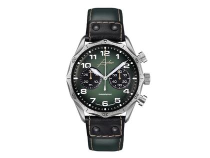 Junghans Meister Pilot Chronoscope Automatik Edelstahl 43mm grünes Zifferblatt grünes Lederband
