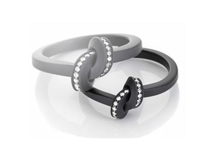 Damenring Edelstahl schwarz IP beschichtet, Bandbreite 2,5mm, Knoten locker gebunden mit 31 Brillanten zusammen 0,15ct TWsi