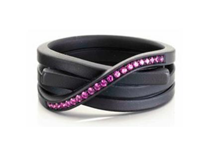 Damenring Edelstahl schwarz IP beschichtet, 2,5mm Bandbreite, dreifach gewickelt mit 21 Saphiren Rot