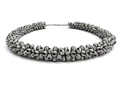 Collier aus einzelnen linsenförmigen Edelstahlfeder, 44cm lang