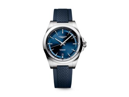 Longines Conquest Automatik Edelstahl 38mm blaues Zifferblatt blaues Kautschukband