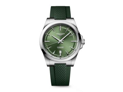 Longines Conquest Automatik Edelstahl 41mm grünes Zifferblatt grünes Kautschukband