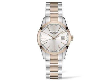 Longines Conquest Classic Damenuhr Quarz Stahl rose PVD silber Edelstahlband