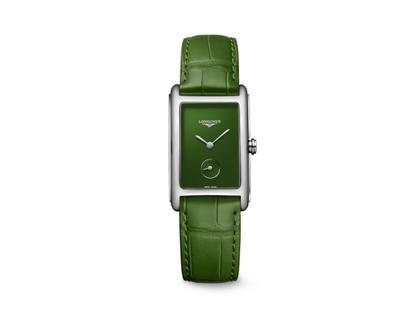 Longines DolceVita Medium Quarz Edelstahl 23x37mm grünes Zifferblatt grünes Lederband