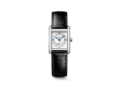 Longines DolceVita Mini Quarz Edelstahl 22x29mm silbernes Zifferblatt schwarzes Lederband