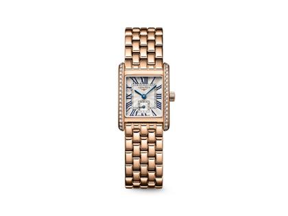 Longines DolceVita Mini Quarz Roségold 22x29mm silbernes Zifferblatt mit Diamanten massives Goldband