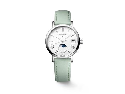 Longines Elegant Collection Quarz Edelstahl 30mm weißes Zifferblatt grünes Lederband
